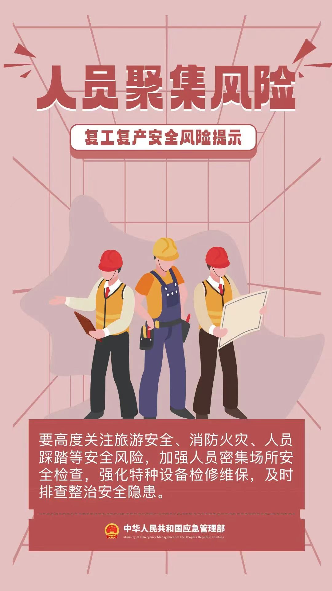 春節(jié)假期結(jié)束,各工程項(xiàng)目陸續(xù)開始復(fù)工復(fù)產(chǎn),安全防范不可疏忽大意。下面帶領(lǐng)大家來了解并盤點(diǎn)一下關(guān)于復(fù)工復(fù)產(chǎn)時期的主要危險因素及應(yīng)對辦法。復(fù)工復(fù)產(chǎn)時期主要危險因素:1.假期綜合征受假期影響,人雖然回到工作崗位了,但思想不集中,這就是“假期綜合征”。其危險之處就在于職工身心疲憊、心情煩躁、精力不集中,很容易