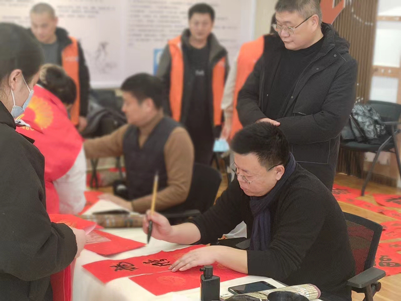 為更好地豐富小區(qū)居民文化生活,迎接歡樂、祥和的新春佳節(jié),2月1日,滕投人和天地小區(qū)開展“翰墨飄香迎新春 紙墨書香送祝?!睂懘郝?lián)送福字活動(dòng)。 活動(dòng)現(xiàn)場(chǎng)志愿者們提前就把春聯(lián)紙、筆墨紙硯等準(zhǔn)備齊全,為大家做好書寫服務(wù)。書法協(xié)會(huì)書法家們一早來到小區(qū),挽袖執(zhí)筆,揮毫潑墨。紅紙為底,黑墨為字