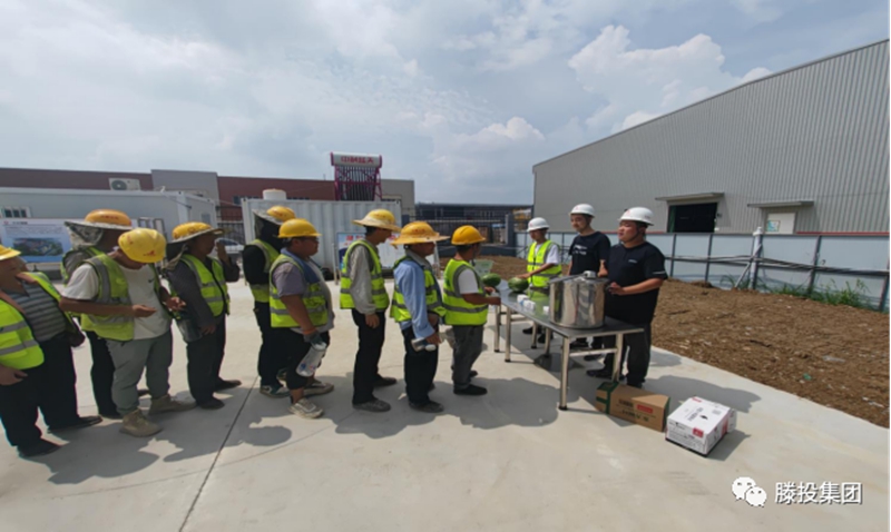 連日來,高溫炙烤著大地,但滾滾熱浪下仍有眾多建筑工作者堅守一線。在中材鋰膜三期項目施工現(xiàn)場,建設者們?yōu)樽汾s進度,不畏烈日驕陽,堅守崗位。為保障一線工人的安全和健康,滕投集團興唐公司領導班子成員和工會相關人員組成夏日送清涼慰問小組,于7月19號到達中材鋰膜三期項目現(xiàn)場,開展“情系工友,夏日送清涼”活動。慰