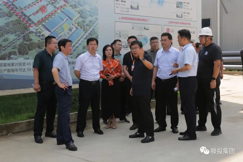 7月26日,滕州市委常委、市委辦公室主任顏丙磊一行來中材鋰膜三期項目現(xiàn)場觀摩調(diào)研,督導重點項目建設情況。滕投集團董事長方玉新,總經(jīng)理侯欽軍,副總經(jīng)理黃建民及相關負責同志陪同參加活動。在項目現(xiàn)場,顏丙磊一行實地察看了項目建設情況,詳細聽取了相關工作匯報,了解了中材鋰膜三期項目在工程進展、廠區(qū)布局、施工工藝