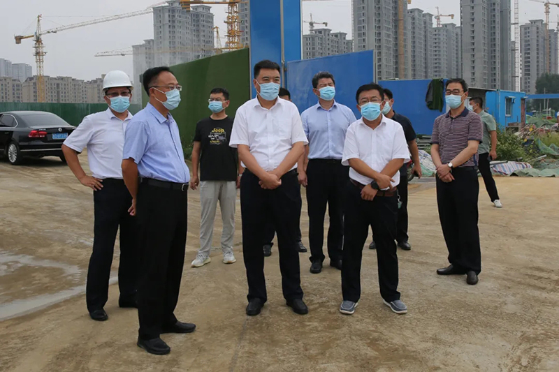 8月10日,市委常委、政法委書記劉慶東,市委政法委分管日常工作的副書記朱瑞國(guó),市社會(huì)治理綜合服務(wù)中心主任謝凱一行來(lái)小崗區(qū)域改造項(xiàng)目督導(dǎo)疫情防控和生態(tài)環(huán)境保護(hù)工作。北辛街道黨工委書記馬金安,集團(tuán)董事長(zhǎng)方玉新參加活動(dòng)。劉慶東詳細(xì)察看了項(xiàng)目疫情防護(hù)措施及建筑工地?fù)P塵治理等工作情況,并對(duì)相關(guān)工作給予充分肯定和高